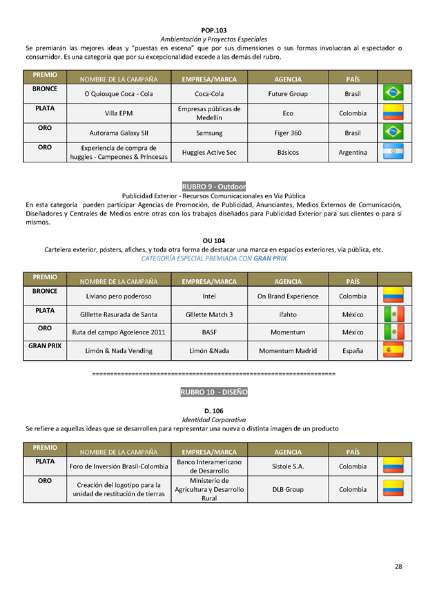 Finalmente, Juan Contreras, director de Glue de Colombia, fue reconocido con una plaqueta en memoria de su triunfo del año 2002, con "Llamame de Orbitel" como Mejor Promoción de Iberoamérica.